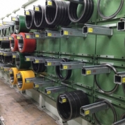 此為位於自動排刀刀房內之二側的刀、刀套、膠套等存放位置,各位置依規格編號。當排刀機器人要將刀、刀套、膠套等由十字預排排刀架取回或要將刀房內的刀、刀套、膠套等放於十字預排排刀架上時,即會依指令到此存放位置拿或存取正確的刀、刀套、膠套。